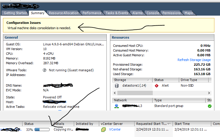 When you say I have a virtual machine showing a Virtual machine Consolidation Needed status alarm does this mean theres a yellow warning in the VMs OverviewSummary. The warning Virtual Machine disks consolidation is needed in the Summary tab of a virtual machine in the VMware vSphere Client console means that when deleting. Backup Esxi Alerts To Consolidate But There Were No Snapshots Taken Server Fault You can verify your process worked by going.